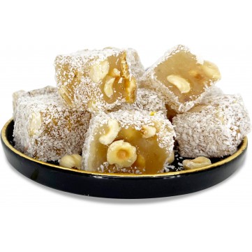İçerik Bilgileri:İçindekiler: İçme suyu, nişasta, fındık, pancar şekeri, asitlik düzenleyici, hindistan cevizi.Raf Ömrü / Son Tüketim Tarihi: Hazır paketli ürün değildir. Siparişe özel, kargoya verilmeden hemen önce sarılır, üretilir ve paketlenir. Kargo gönderim tarihinden itibaren 60 gündür. Muhafaza Koşulları: Oda sıcaklığında, direk..